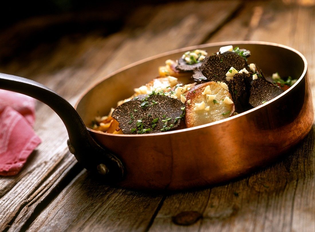 In der Resthitze der Nacht gegarte Knollen, veredelt mit frisch gehobeltem schwarzen Trüffel und einer Prise Meersalz.